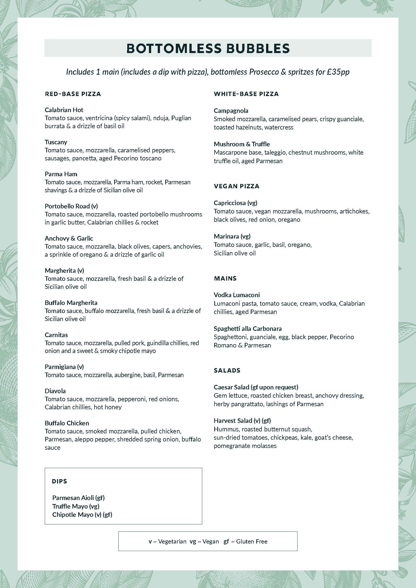 Bottomless Bubbles are available for groups of between 2 and 8 people so you can make a real party out of your booking! Fancy making it a big one? Feel free to enquire for larger groups. Peruse our menu below and book in to enjoy our Bristol’s best Bottomless Brunch!