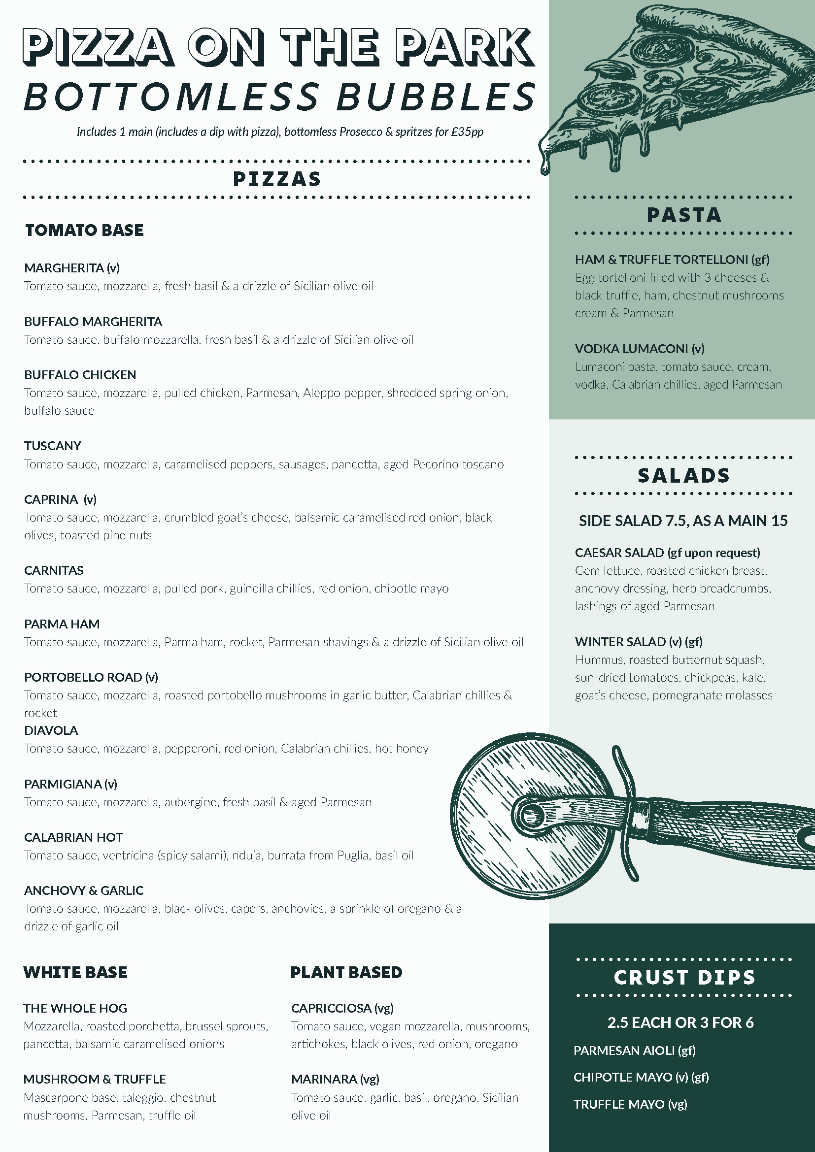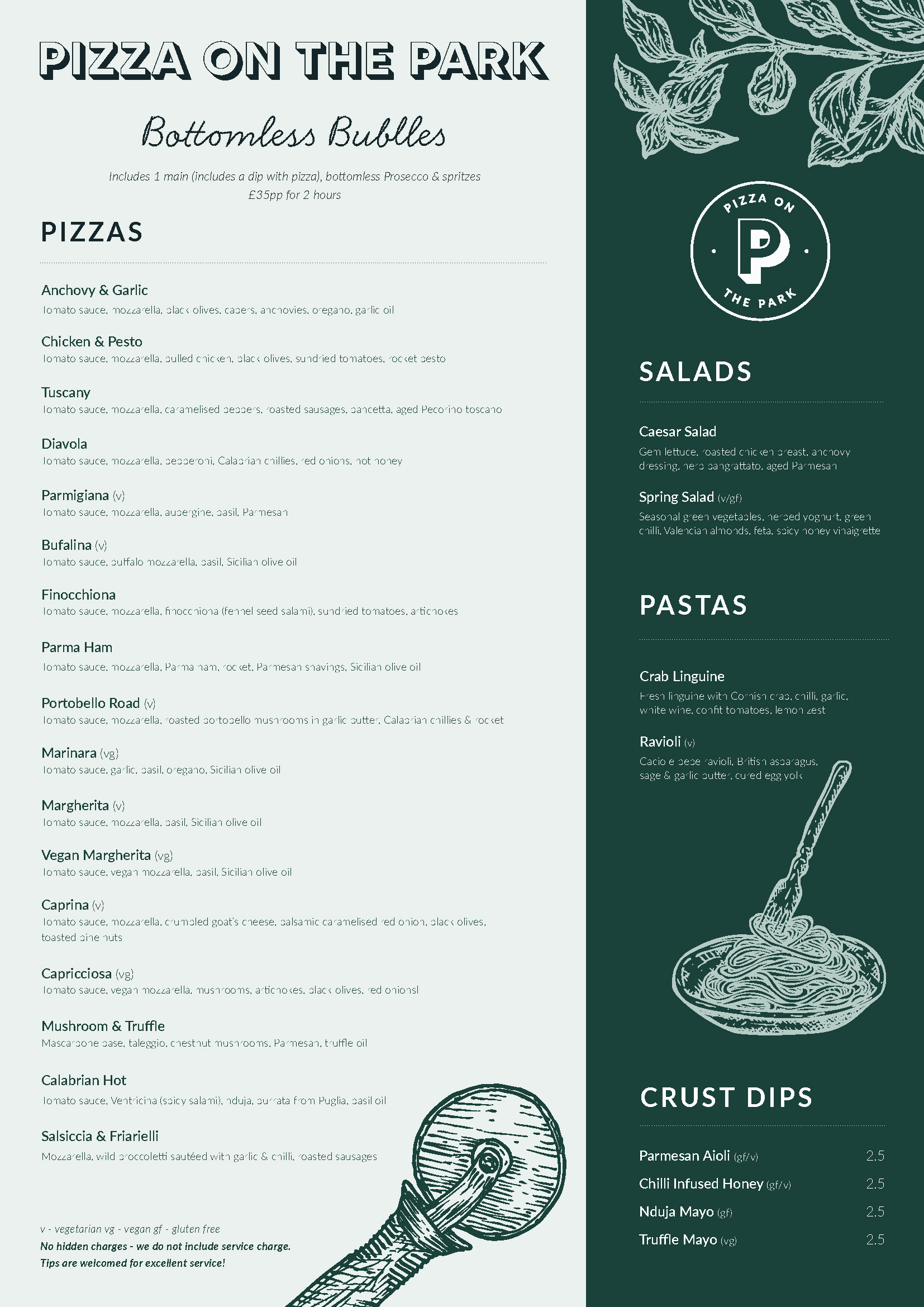 It’s the Bottomless Brunch you’ve been waiting for! Every Saturday and Sunday from 12-2pm at Pizza on the Park you can enjoy unlimited Prosecco and/or spritzes alongisde your Pizza on the Park favourites. Choose a main each and as many bubbles as you can drink for just £35 per person.